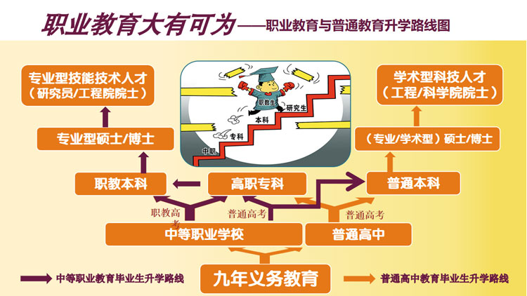 当前,职业教育已经贯通了中职、高职、本科、研究生、博士的升学通道。